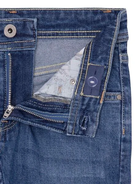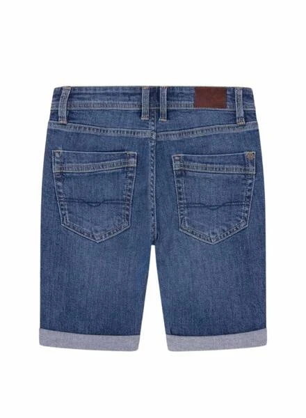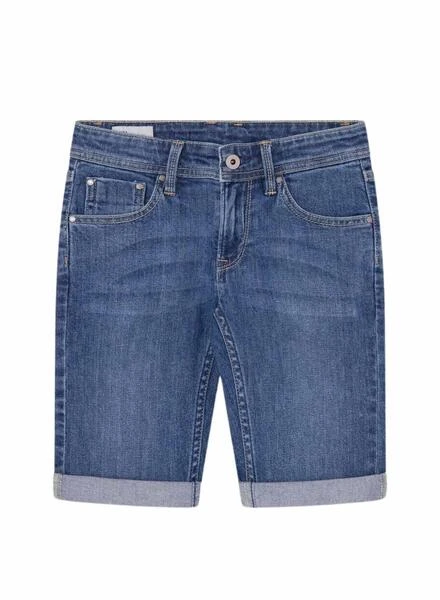 Bermuda en jean Pepe Jeans. Ajuste slim. Tejido denim elástico. Tiro regular. Lavado azul medio. Dobladillo en el bajo. 5 bolsillos. Remaches metálicos con logo grabado.