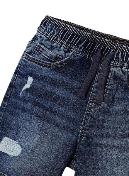 Bermuda Mayoral. Lavage moyen. Détail de déchirures. Taille élastique. Avec lacets. 5 poches. Étiquette de la marque à l’arrière. Tissu en coton Better.