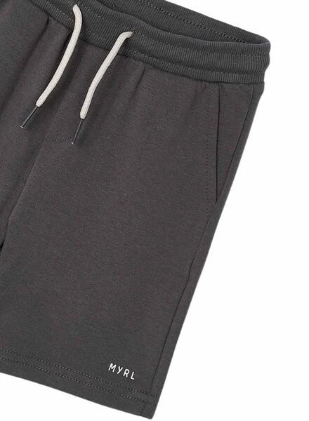 Shorts Mayoral. Couleur grise. Taille élastique. Lacets à la taille. Poches latérales. Une poche arrière. Logo sur une jambe. Modèle basique.