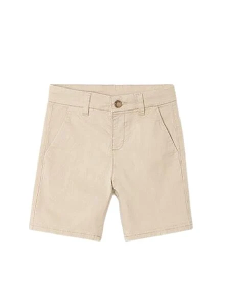 Bermudes Mayoral. Modèle en serge chinois basique. Couleur beige. Fermeture avec bouton. Taille élastique. Poches latérales.