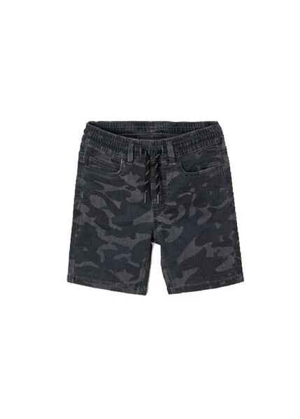 Bermuda Mayoral. Modèle Soft Denim. Imprimé camouflage gris. Taille élastique ajustable avec cordons de serrage. Cinq poches. Tissu denim extensible.