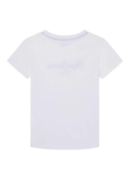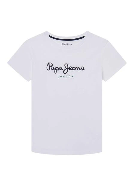Jeans Pepe T-shirt. Modèle New Art. Couleur blanche. Col rond élastique. Logo imprimé sur la poitrine en marine. Manches courtes. Coupe régulière.