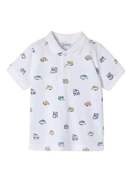Chemise de maire. Couleur blanche. Manches courtes. Col polo avec 2 boutons. Imprimé de voitures. Coupe régulière.