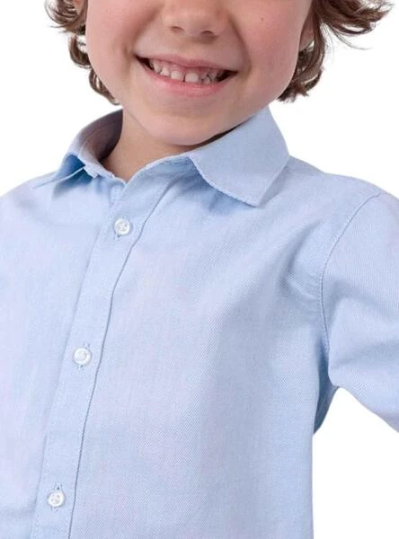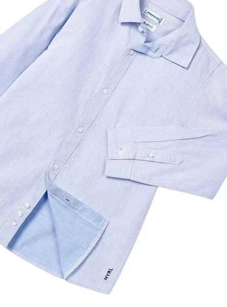 Chemise Mayoral. Modèle de base. Couleur bleu clair. Fermeture principale avec boutons. Poignets boutonnés réglables.