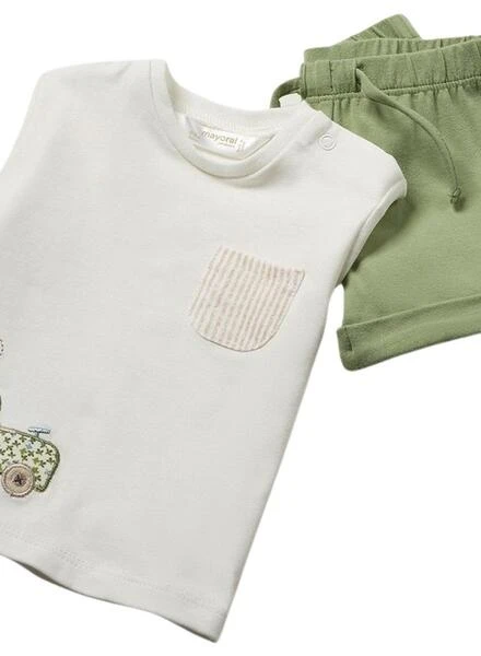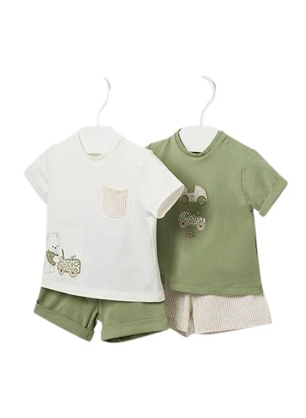 Ensemble Mayoral. Modèle de voitures. Couleur verte. 2 ensembles de 2 pièces avec un t-shirt et un pantalon.