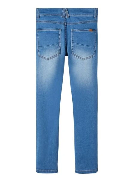 Jeans Name It. Modèle Theo. Couleur bleu. Taille ajustable. Poche pratiques. Fermeture par bouton zip-crochet. Ajustement supplémentaire slim.