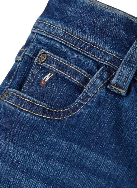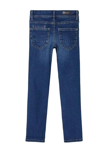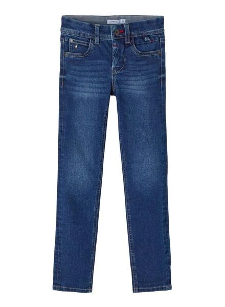 Jeans Name It. Modèle Theo. couleur bleu foncé. Tissu lavé. 5 poches. Format supplémentaire slim. Jambe supplémentaire slim. Taille ajustable.