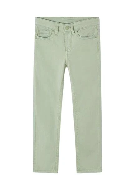 Pantalon Mayoral. Couleur verte. 5 poches. Tissu en sergé. Coupe slim. Modèle de base. Étiquette de la marque à l’arrière.