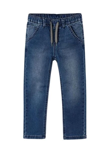 Pantalon en jean Mayoral. Tissu en denim souple. Jogger. Lavage moyen. Taille élastique avec cordons. 5 poches. Coupe slim. Tissu doux.
