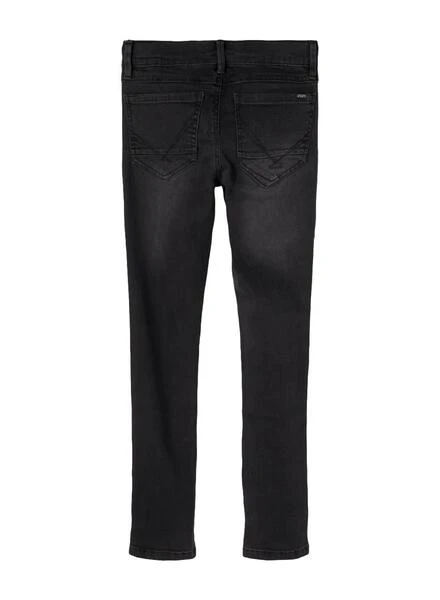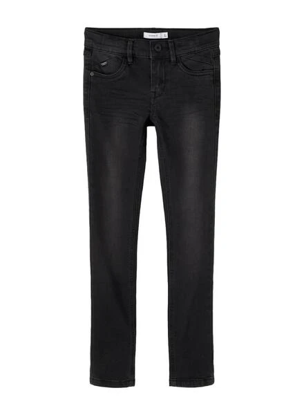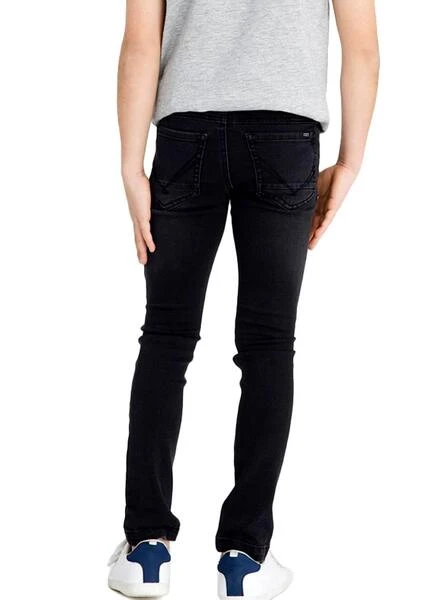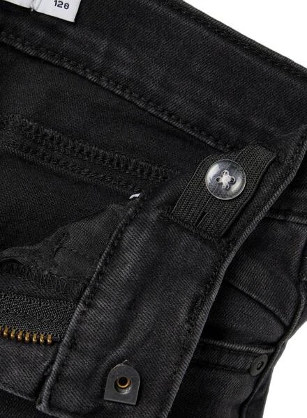 Pantalon Name It. Modèle Pete. Couleur noire. Fermeture par crochet et zip. Taille ajustable à l’intérieur. Coupez skinny. Cinq poches. Effet usé.