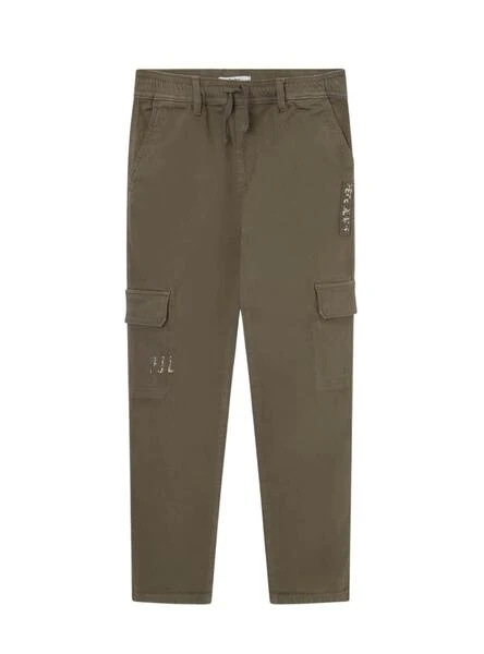 Pantalon Pepe Jeans. Modèle Tadeo. Couleur verte. Taille élastique avec cordon ajustable. Style cargo. Plusieurs poches.