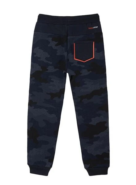 Pantalon Survêtement Mayoral. Tissu peluche. Imprimé camouflage marin. Taille élastique réglable avec cordon de serrage. Poches latérales avec zip. Poche arrière. Détails en orange.