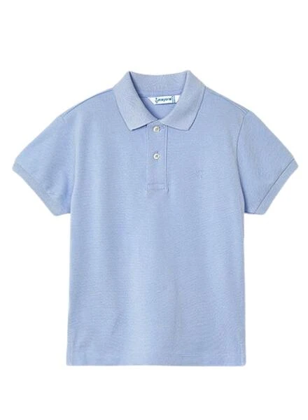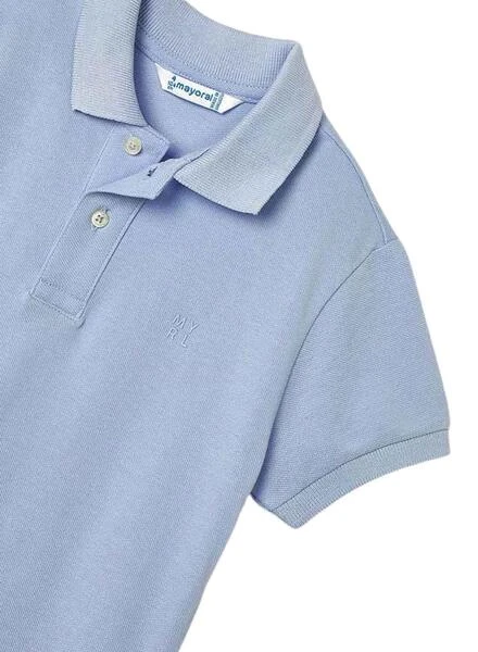 Polo Mayoral. Modèle Granito Basique. Couleur bleu clair. Col polo élastique. Manches courtes. Fermeture à boutons. Coupe régulière.