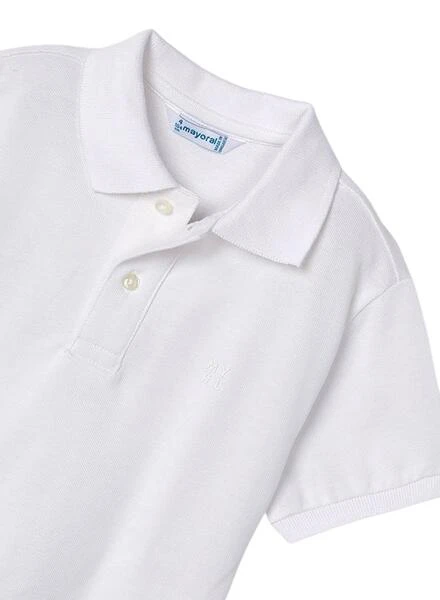 Polo Mayoral. Manche court. Couleur blanc. Col avec deux boutons. Tissu en coton biologique.