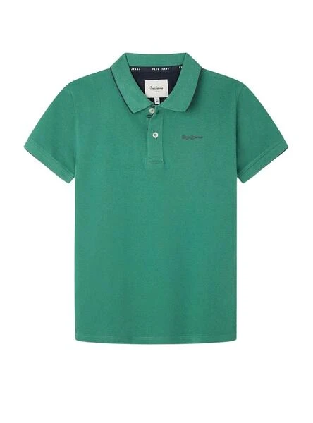 Polo Pepe Jeans. Modèle New Thor. Couleur verte Jungle. Manches courtes. Logo brodé sur la poitrine. Patte de boutonnage. Col polo. Coupe régulière.