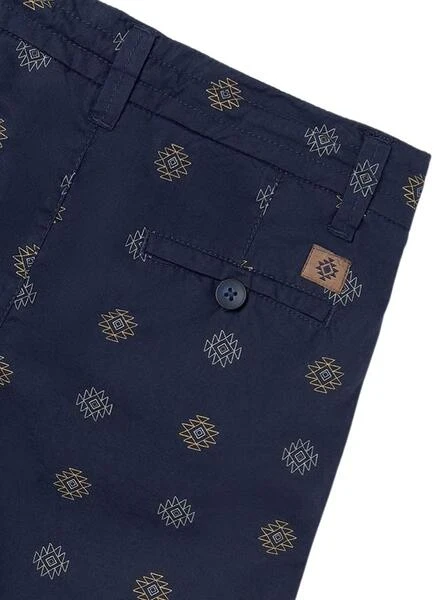 Bermuda Mayoral. Imprimé ethnique. Couleur marine. Lacets à la taille. Poches latérales. Poches arrière avec bouton. Étiquette cousue à l’arrière.