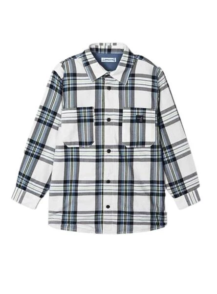 Surchemise Mayoral. Printed à carreaux. Couleur blanc et bleu. Poches sur la poitrine. Fermeture boutonnée. Regular fit Poignets réglables.