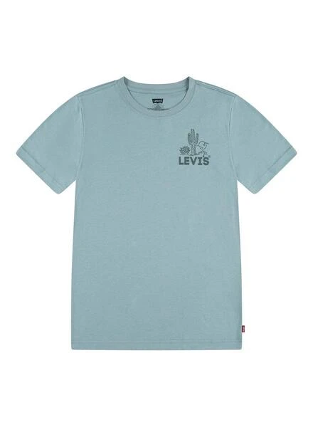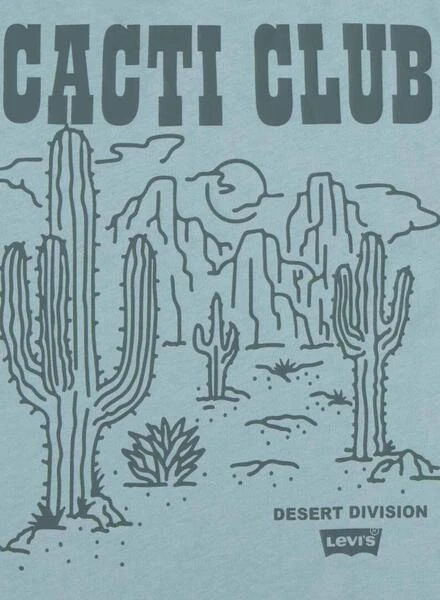 T-shirt Levi’s. Modèle Club. Couleur bleue. Manches courtes. Col rond. Impression graphique sur la poitrine et le dos. Coupe régulière.