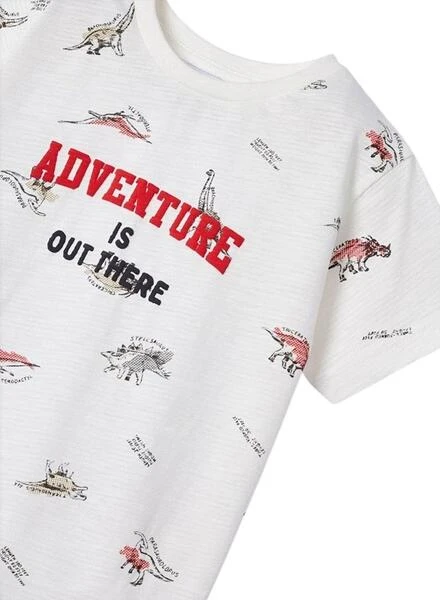 T-Shirt Mayoral. Tissu en coton durable. Manche court. Vêtement ecofriends. Dinosaures complets Printed.