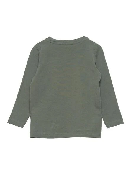 T-Shirt Name It. Modèle Oeye. Couleur vert foncé. Manche longue. Col rond large. Dessin 3D imprimé sur la poitrine. Fabriqué avec du coton doux.